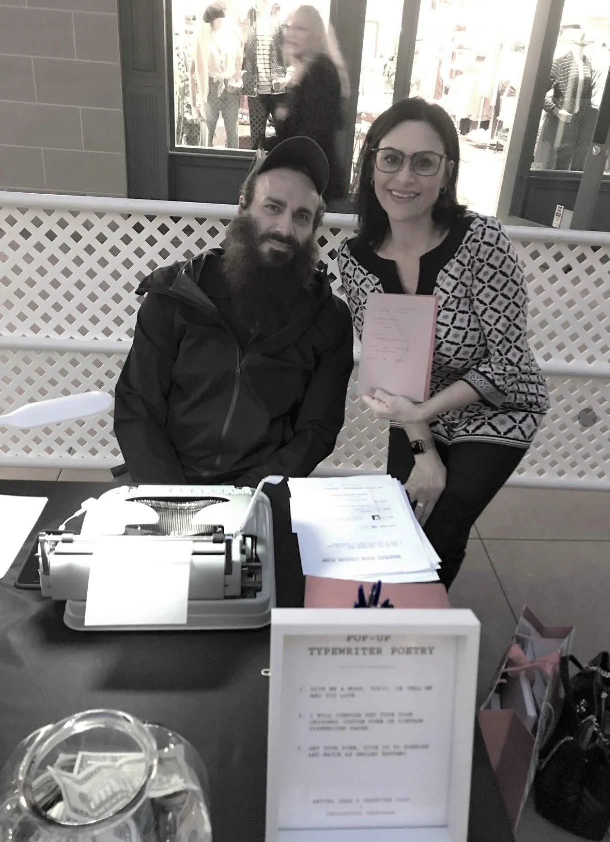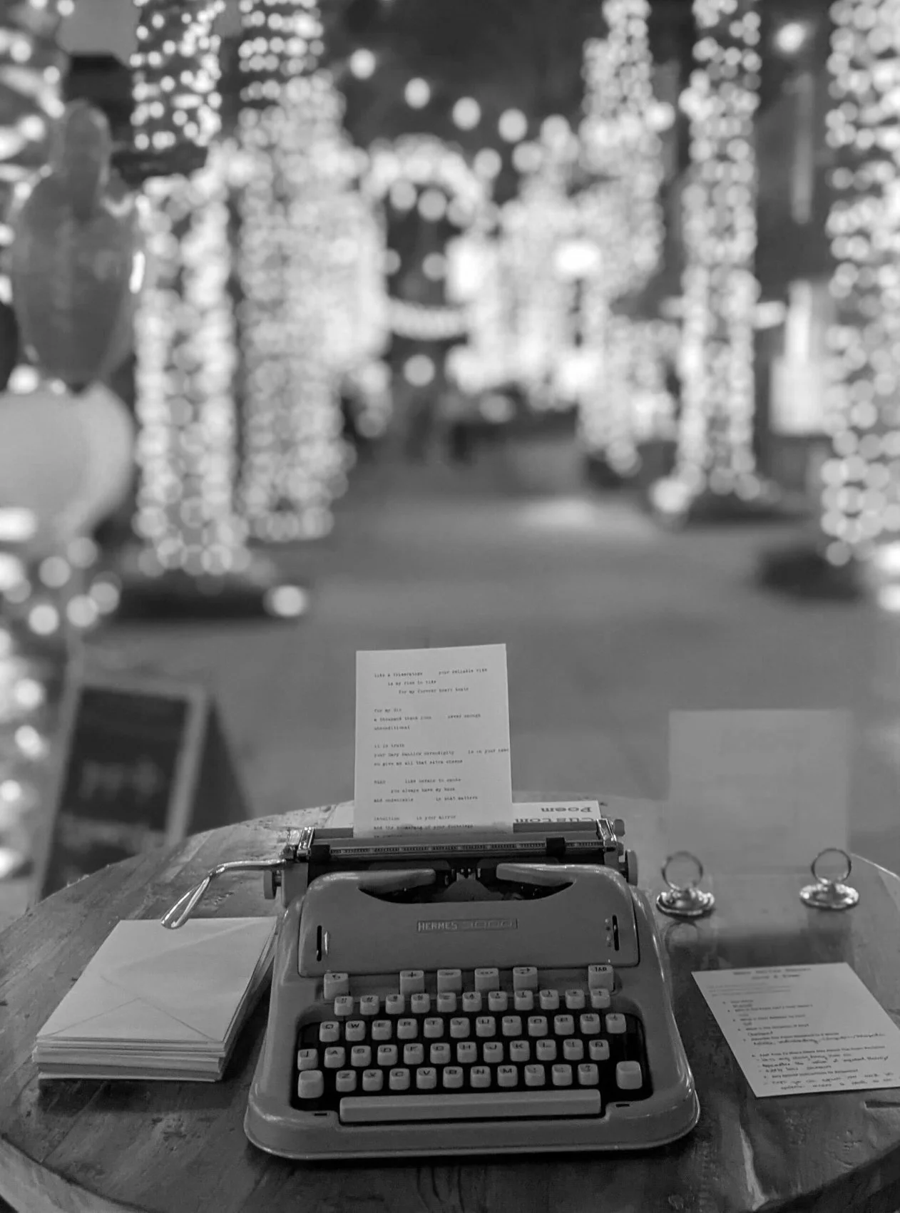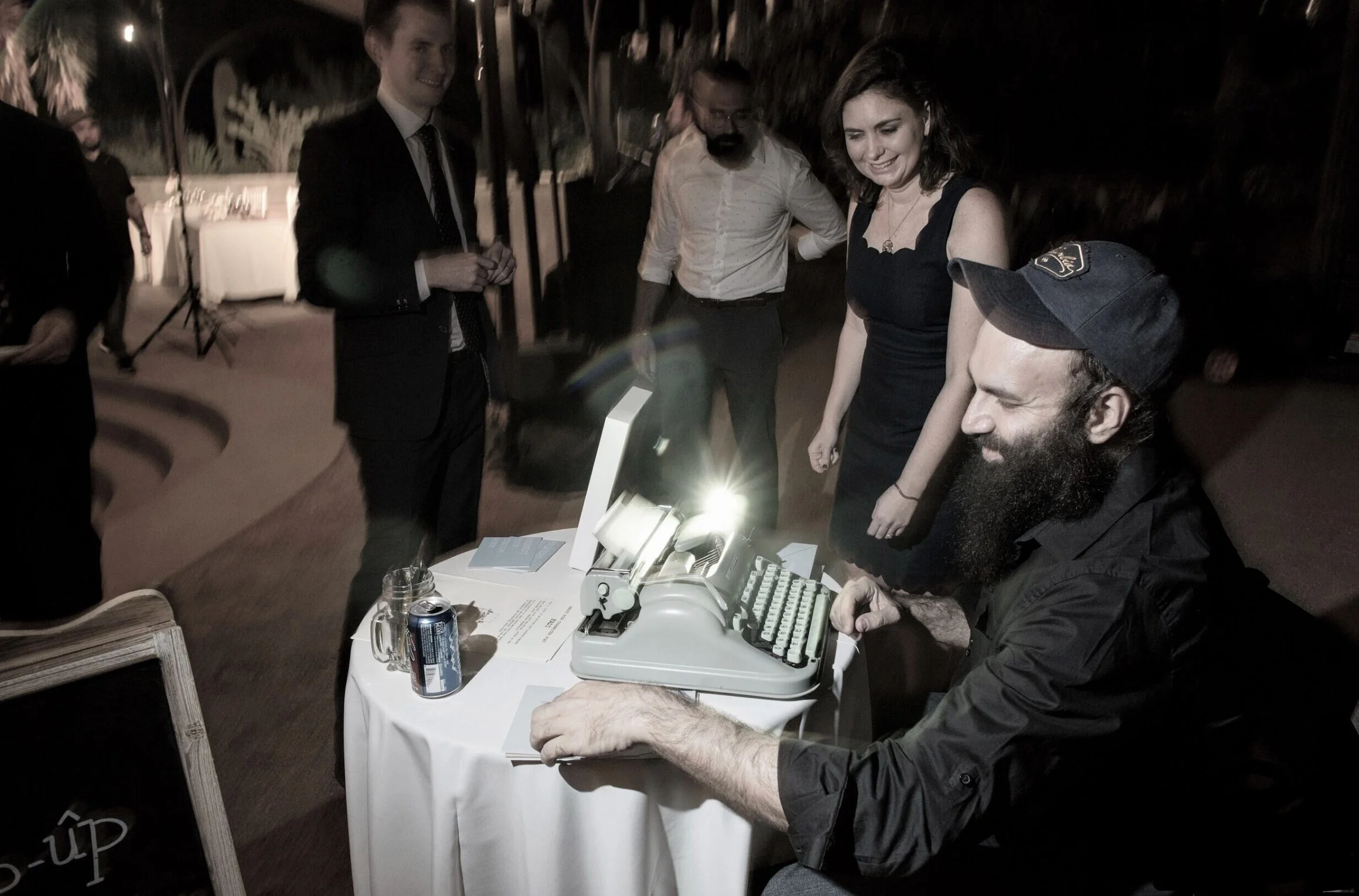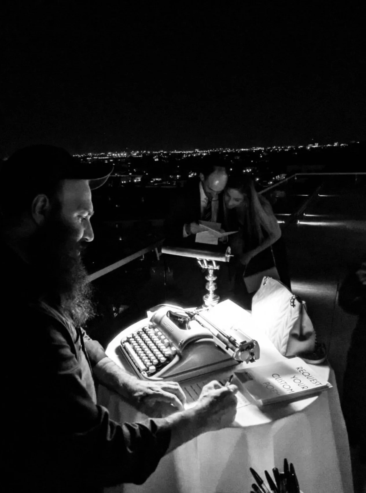 The poet curates original bespoke poems live and on-the-spot for event guests on his vintage 1945 typewriter giving "An Honest Intuitive Appraisal Of Your Vibe, Through Verse".